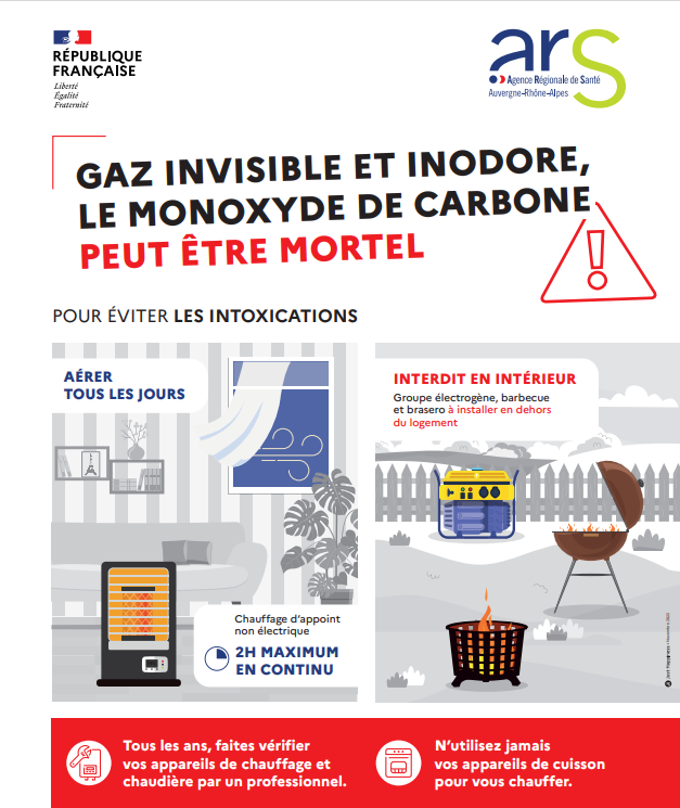 L'Agence Régionale de Santé (ARS) lance une campagne de prévention sur les risques d'intoxications au monoxyde de carbone qui augmentent avec l'arrivée de l'hiver.