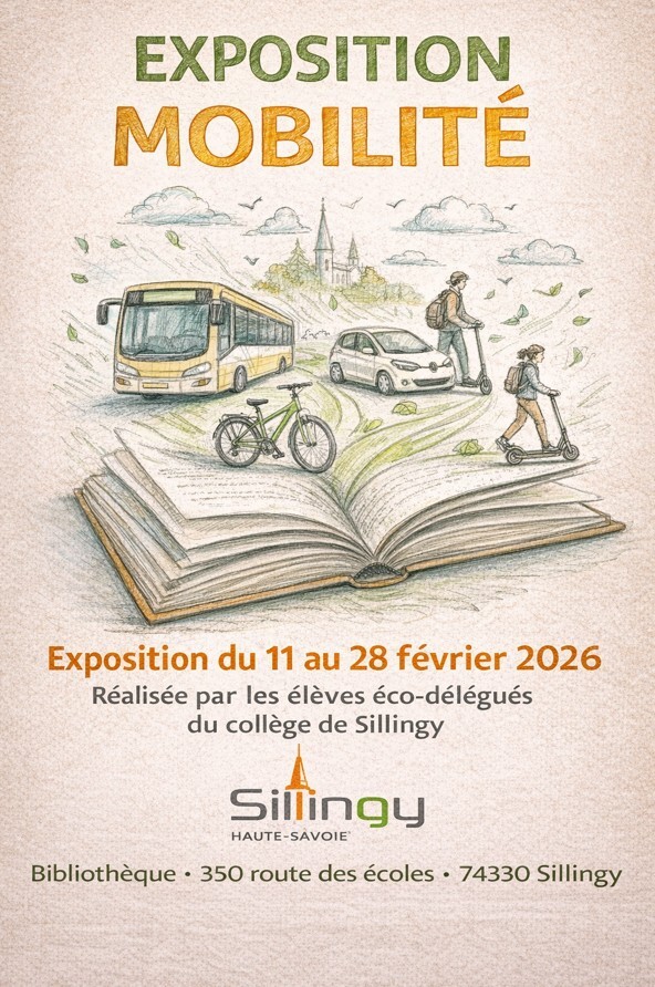 Une exposition sur le thème des mobilités est proposée par les élèves éco-délégués du collège de Sillingy, du 11 février au 28 février. L’exposition invite à réfléchir à nos modes de déplacement, à mieux les comprendre et à envisager des alternatives plus durables.